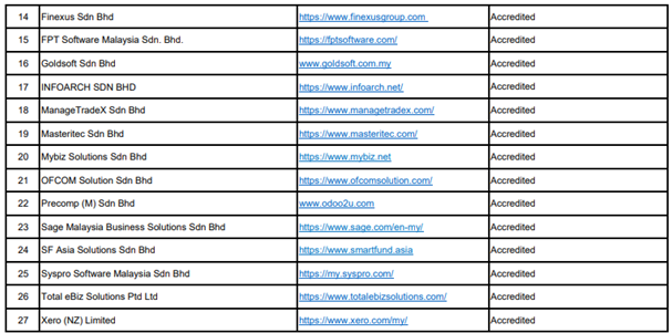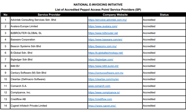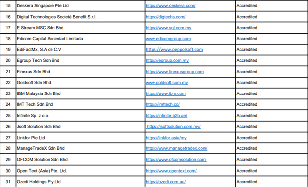 Senarai Pusat Akses/Pembekal Perkhidmatan (SP) Peppol Bertauliah: